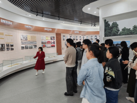 图1 图为校史馆讲解员为学生党员讲解办学历史