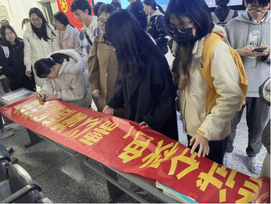 分享环节结束后,诚信考试倡议环节如期开启。活动现场首先以击鼓传花的趣味形式,开展 “我与期末周的那点儿事” 互动分享游戏,部分学生的真实分享引发了全场广泛共鸣。随后,大家共同观看大学生自制微电影《幸好可以重来》,通过影片中的生动故事,深刻领悟诚信考试的重要意义与必然要求。影片播放结束后,参会学生纷纷在 “诚信应考 学风先行” 诚信考试倡议横幅上郑重签字,承诺将继续发扬优良学习风气,以优良学风带动良好考风,坚守诚信为本、学术为魂的底线,共同营造公平公正的考试环境。
